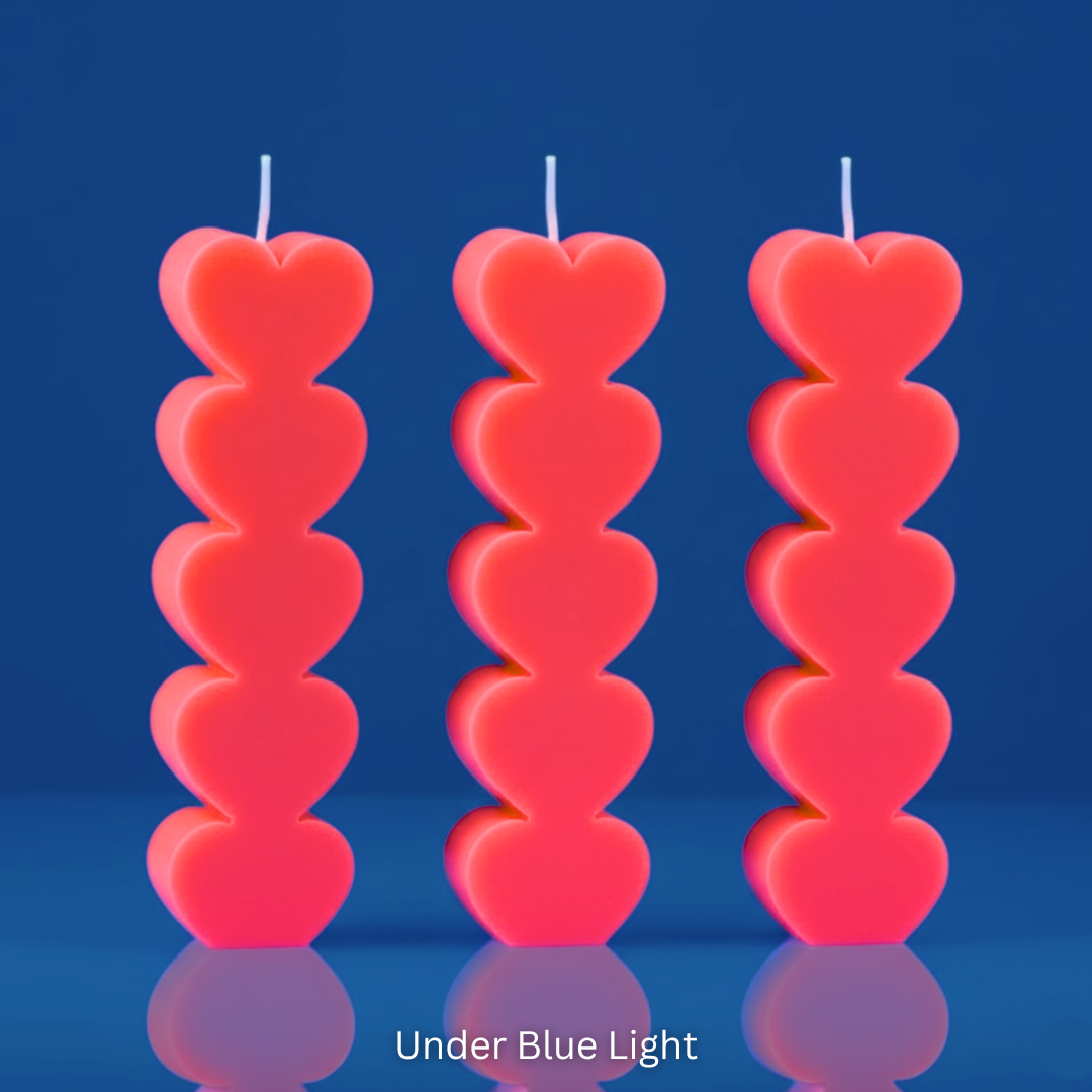 Uv wax play small heart pillar candle - set of 3